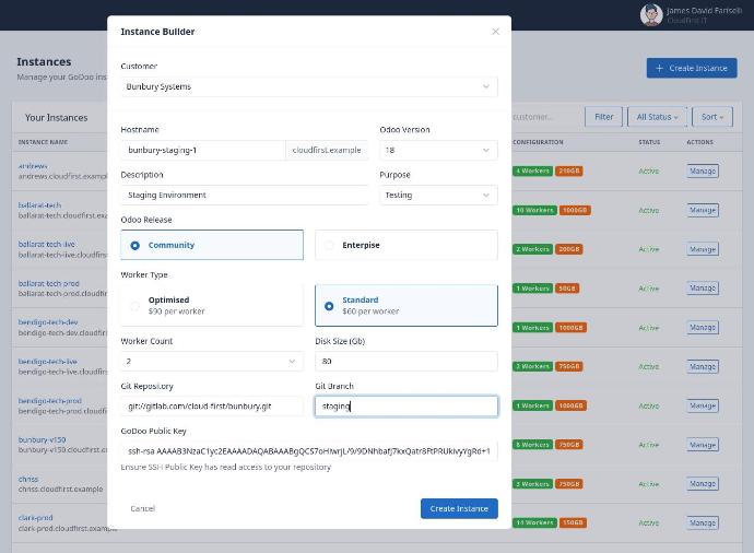 At GoDoo, we believe in independence, and your instance is your own. We don't restrict on Odoo release, whether it be Community or Enterprise, version 10 or 19, we leave that to you.
